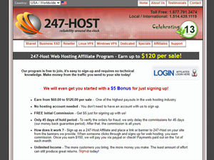 Otherthe 247-Host Web Hosting Affiliate Program and Earn up to $120 per sale! We will even get you started with a $5 Bonus for just signing up!