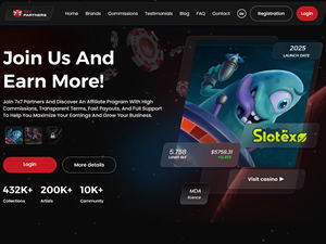 7x7 Partners is the official affiliate program for Slotexo and FamBet casino. Your potential revenue is limitless with our high-converting offers and exceptional player retention. Join us now.