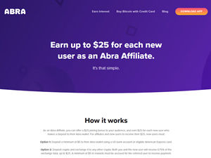 OtherAbra affiliate program. As an Abra Affiliate, you can offer a $25 joining bonus to your audience, and earn $25 for each new user who makes a deposit to their Abra wallet.