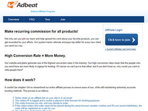 Click the "Join" button above to visit Adbeat Affiliate Program's official affiliate program page.