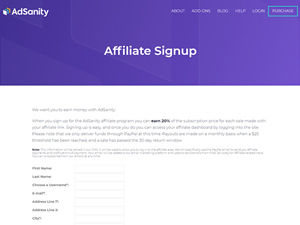 Otherthe AdSanity affiliate program. You will earn 20% of the subscription price for each sale made with your affiliate link.