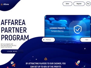 Affarea.com is the official casino affiliate program of bonanzagame.com and hotlinecasino.com. You can choose one of the tariffs: Revenue Share, CPA, Hybrid CPA. Every new partner can use the Revenue Share model. The CPA model is offered individually to active partners, after testing the traffic. Company Info: Hotlinecasino.com & bonanzagame.com are owned and operated by WoT N.V. Limesco Limited payment service provider, Reg. # HE261682, 69 Arch. Makariou III Ave., 1070 Nicosia, Cyprus. WoT N.V. is licensed and regulated by the Government of Curacao, Netherlands Antilles under the licences: No.1668/JAZ.