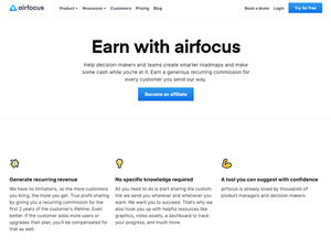 airfocus Affiliate Program offers a Recurring commission for the first 2 years commission structure, making it one of the competitive programs in the Other space.