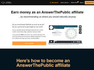 Otherthe AnswerThePublic affiliate program. As one of our trusted Partners, you can now earn 30% of the monthly subscription, every month for each customer who signs up for a paid AnswerThePublic member...