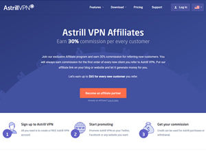 Otherthe Astrill VPN Affiliate program and earn 30% commission for referring new customers. You will always earn commission for the first order of every new client you refer to Astrill VPN.