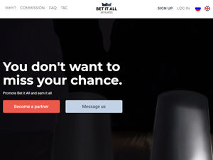 Click the "Join" button above to visit Bet It All Affiliates's official affiliate program page.