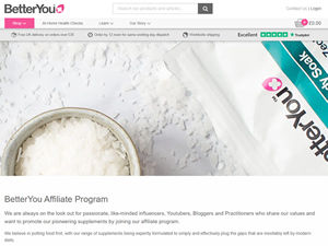 Thank you for your interest in the BetterYou Affiliate Program. We are always on the look out for passionate, like-minded influencers, Youtubers, Bloggers and Practitioners who share our values and want to promote our pioneering supplements by joining our affiliate program. If you have an amazing website or blog and believe our products would suit your audience, then we’d love to hear from you. By becoming our affiliate, you will get: • Up to 10% commission for each purchase you referred. • Payouts when you reach minimum £25 • The payouts are done via either Paypal or Bank transfer. Company Info: Unit 24 Shortwood Court, Shortwood Business Park, Dearne Valley Parkway, Barnsley, S74 9LH Registered Company No: 05541287