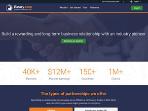 Binary.com is the premier trading platform for binary options on all financial markets (Forex, Crypto, Metals, CFDs etc). Depending on what you do, you can apply as our Affiliate or Introducing Broker, or both. More new clients from you means higher potential commissions. The Binary.com Affiliate Programme allows you to benefit from referring new clients to our site. Earn up to 45% in commission based on the total net revenue generated by your clients. Commissions are credited into your account after the 15th of every month.