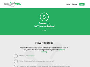 BulletVPN offers a 100% commission structure, making it one of the competitive programs in the Other space.