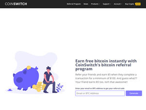 Welcome to the CoinSwitch affiliate program. Refer your friends and earn $5 when they complete a transaction for a minimum of $100. And guess what? Your friend earns $5 too. Isn't that awesome! CoinSwitch is a cryptocurrency exchange aggregator platform built to help users trade cryptocurrencies with ease and at the best rates. Our user interface simplifies the cryptocurrency trading and allows users to trade over 400+ cryptocurrencies, along with an ability to buy cryptocurrency with a credit card at the best price.