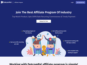 DotcomPal is the most affordable, One-Stop to Launch, Market, and Sell Online, that has empowered 16,500+ individual professionals with all the necessary web marketing automation tools. It makes building and deploying websites, landing pages, email marketing, funnels, memberships, and eCourses hassle-free, and has already powered more than 74 million web visits. Benefits of becoming a DotcomPal Affiliate: 1- With a network of 3000+ affiliates, you get the opportunity to bond and learn from affiliate industry leaders. 2- Get all the required training, tools, videos, eBooks, and access to other learning sources worth hundreds of dollars for free to boost your affiliate sales 3- Get affiliate marketing hacks, updates, industry tips without any hassle 4- Access to insightful webinars, product launches, lifetime deals, and other product upgrades Affiliate Program Benefits: 1- Earn 50% recurring commission on every sale 2- Transparent tracking with 180 days cookies 3- Sell a product that's already best-selling in the industry 4- 100% Transparency with Timely Payout 5- Dedicated Community, Support & Sales Team