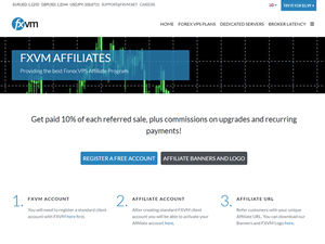 FXVM Affiliates is the best Forex VPS Affiliate Program. You will get paid 10% of each referred sale, plus commissions on upgrades and recurring payments! And there are no fees, no obligations, and no minimum requirements to earn commissions. Ready to get started? Register a Free FXVM Affiliate Account NOW!