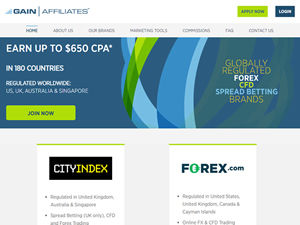 GAIN Affiliates is a trademark of GAIN Capital UK Ltd; a subsidiary of GAIN Capital Holdings inc. which is publicly traded on the New York Stock Exchange (NYSE: GCAP). Our experienced affiliate management team is based out of the GAIN Capital UK Limited London office. The teams objective is to consistently provide a dynamic and transparent programme, allowing GAIN Capital affiliates to optimise their global traffic and in turn, play a key role in the worldwide growth of our brands. You can find further general and product information about our brands by going directly to City Index, Forex.com or Finspreads.com. Join GAIN Affiliates today.