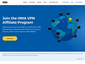 HMA VPN (HideMyAss) is the #1 VPN, web proxy and online privacy service in the world. HMA affiliate program will offer you up to 100% commission. That amount then depends on the length of the signup and the renewals. Join the HMA VPN Affiliate Program right now!