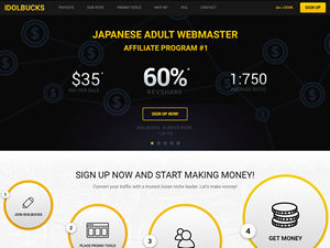 Welcome to the IDOLBUCKS adult affiliate program. WHY IDOLBUCKS? • Free Hosting For Our Affiliates We offer you free hosting to promote any of our sites. Get free server space and bandwidth to promote us. We will pay all the hosting, server, and bandwidth cost for you so you can make even more money promoting us! • FHGs added Daily We have more than 250 k Free hosted galleries. And we update our archive daily. So you will always have something new for promotion. • Exclusive Content Sites We have 24 Japanese porn sites in many niches now. We earn your traffic every day by publishing websites with exclusive content that update frequently, convert visitors into customers and retain customers over the long term! • Our Programs — up to $35 Pay Per Sign — up to 60 % Revenue Share — up to 10% Webmaster Referral • Great Variety of Promotional Tools We offer a wide range of sophisticated promotional tools covering everything you need. If you're looking for custom HD tube clips or simple banners, we offer all of it, and we have it readily available within the admin! Are updates are regular and frequent! • Payment Options We assure all of our payments through Paxum, Payoneer, EPS and other quick means of money transfer including wire and checks. Joining us as an affiliate will get you the biggest bang for your buck. You will not regret teaming up with us for the finest Japanese Porn available on the Web today.