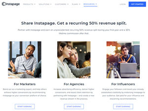 Join the Instapage partner affiliate program and earn an unprecedented recurring 50% revenue split during your first year and a 30% lifetime commission after that. We provide you with high-performing ads and engaging content that you can use to consistently reach out to your audience and add value. Ready to make some money? Join the Instapage affiliate program today! Instapage is the world's most advanced landing page platform. Our six products work together to help marketing teams drastically increase advertising conversion while lowering cost-per-click. A Leader in G2Crowd’s Personalization, Conversion Rate Optimization, A/B Testing, and Landing Page Software grids, Instapage is ranked #1 in customer satisfaction.