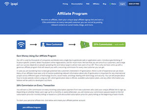 Click the "Join" button above to visit ipapi Affiliate Program's official affiliate program page.