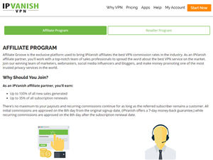 OtherIPVanish affiliate program is powered by the Affiliate Groov platform. As an IPVanish affiliate partner, you'll work with a top-notch team of sales professionals to spread the word about the best V...