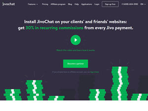JivoChat is a live chat software that enables client communication through voice, chat, FB, and email - all in one app. Increase conversion rates with us! With JivoChat's Affiliate Program, you get paid every single time a customer you recommended JivoChat to pays for the PRO version of our software. If you sign up ONE customer and that customer pays $100 every month to JivoChat, you’ll get $30 every month. So, it’s literally 30% of everything that the people that signed up through you (as an affiliate) pay to JivoChat, forever. That’s why we have the best Affiliate Program in the world