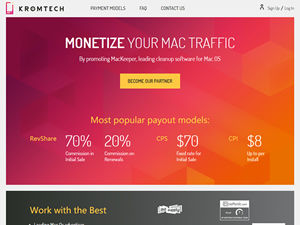 Kromtech Alliance Corp. is committed to bringing new and innovative ideas to reality. We work closely with top certification organizations to ensure that our consumers benefit from independent opinions of our software from trusted sources. Our flagship product MacKeeper, is an award-winning system utility which includes a set of powerful maintenance features for Mac Optimization, Security, Data Control and Cleaning, localized for 18 languages. Monetize your traffic by promoting MacKeeper, a leading cleanup software for MacOS. Choose among three commission models available from the start: Revenue Share, Cost per Sale and Cost per Install. Revenue share: right from the start we pay you 70% commission on each Initial sale and 20% on each Renewal. CPS: up to 70$ on each Initial sale based on GEO. CPI: up to $8 per each install based on product installation's GEO.
