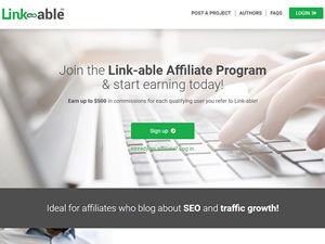 Welcome to the Link-able affiliate program. We care about our affiliates and believe that your success is our success! We’re deeply committed to providing a quality affiliate program and we’re dedicated to helping our affiliates earn their maximum potential. Here’s some benefits: • Reoccurring commissions up to $500 for each referral • No limit on the number of referrals • Pre-made banners to help you quickly promote • Timely payouts • Deep linking • 90 day cookie based tracking • Dedicated affiliate support • Easy-to-use affiliate control panel Link-able is a powerful platform that smartly connects website owners with elite authors who can outreach and guest blog on high domain authority websites, building quality, whitehat backlinks for SEO and PR. Website owners who need backlinks sign up for a client account and post link building jobs where they receive proposals from authors and hire the ones they want. Clients only pay for each job successfully completed and will typically hire multiple authors on a reoccurring basis. Company Info: Link-able.com 1320 Tower Road, Schaumburg, IL. 60173