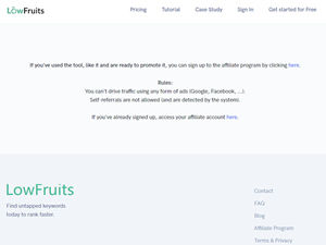 Click the "Join" button above to visit LowFruits's official affiliate program page.