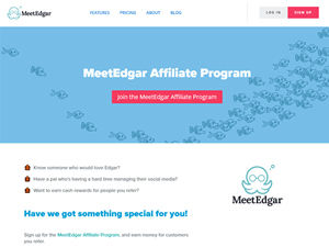 Sign up for the MeetEdgar Affiliate Program, and earn money for customers you refer. There's no limit to how many friends you can send our way, so there’s no limit on how much Edgar love you share. Our Commission Structure: • You get $10 cash reward for referring customers to Edgar • You get $5 cash reward for referring customers to Eddie • You get $20 cash reward for referring customers to Edgar Annual • Your get $50 cash reward bonus for referring 10 customers About MeetEdgar.com: MeetEdgar is a social media automation and scheduling tool. We take your social media stress and turns it into social media success with features designed to remove the time-intensive parts of managing the content on all of your networks. MeetEdgar automates content for your Facebook, Twitter, Instagram, Pinterest, and LinkedIn accounts.