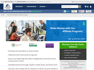 Join the My Choice Software affiliate program and earn 2% commission per sale. We have a high >$200 average order value, which means a hefty commission for you! About MyChoiceSoftware.com: MyChoiceSoftware is an industry leader in software sells and service. We are a Google Trusted Store and winner of Microsofts 2016 Rising Star of the Year Award. We offer fast physical and digital delivery of our products and provide expert USA based technical support for customers. My Choice Software is also active in the federal and educational verticals providing product sourcing solutions, training, as well as licensing services. Company Address: 23706 Birtcher Drive, Lake Forest, CA 92630