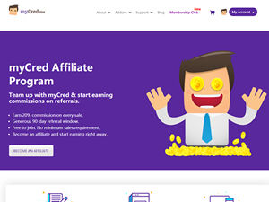 Welcome to myCred Affiliate Program. myCred is a free, open-source and developer friendly points management tool for WordPress powered websites. Team up with myCred & start earning commissions on referrals. • Earn 20% commission on every sale. • Generous 90-day referral window. • Free to join. No minimum sales requirement. • Become an affiliate and start earning right away.