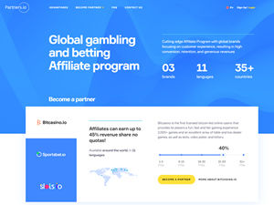 Partners.io is the official affiliate program for Bitcasino.io, Sportsbet.io, Slots.io. We have all the expected features you might find on most affiliate programs. What sets Partners.io apart from everyone else is the pioneers behind Partners.io. We ensure that affiliates and customers are given the best possible experience, from speed, rewards, loyalty, our multilingual, and global approach to everything we do. With up to 45% Revenue Share deal on offer, it's time to start profitable cooperation! Sign up now!