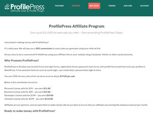 ProfilePress offers a 20% commission structure, making it one of the competitive programs in the Other space.
