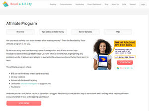 Are you ready to help kids learn to read while making money? Then the Readability Tutor affiliate program is for you. By incorporating machine learning, speech recognition and AI into a smart app, Readability’s breakthrough technology LISTENS while a child READS, highlighting any problem words. It adjusts and adapts to every child’s unique needs and helps them learn to read. The affiliate program offers: • $15 flat fee commissions • 30 day cookies • Advanced database tracking • Dedicated affiliate managers to support you • And more! Whether you’re a teacher or a tutor, a parent or a blogger, Readability is the perfect way to earn some extra money while helping children everywhere fall in love with reading. Join today!