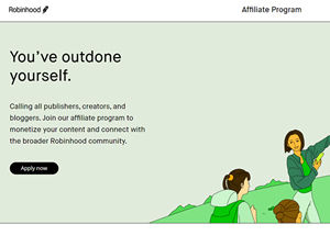 Welcome to Robinhood Affiliate Program. Calling all publishers, creators, and bloggers. Join our affiliate program to monetize your content and connect with the broader Robinhood community. You’ll earn for each successful referral you make. We offer competitive affiliate rates within our industry. About Robinhood: Robinhood is democratizing finance for all. With customers at the heart of our decisions, Robinhood is lowering barriers, removing commission fees, and providing greater access to financial information.