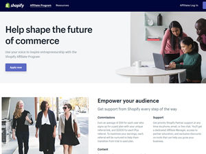 The Shopify Affiliate Program includes entrepreneurs, educators, influencers, content creators, and others who refer their entrepreneurial audience to Shopify. The program is free to join, and allows affiliates to monetize their audience and earn commissions from each new Shopify merchant referral. Affiliates can earn an average of $58 for each user who signs up for a paid plan with your unique affiliate link, and $2000 for each Shopify Plus referral. To maximize your earnings, each referral will be supported to help them transition from trial to paid plan.