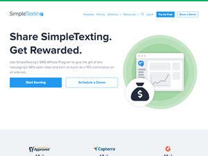 OtherUse SimpleTexting’s SMS Affiliate Program to give the gift of text messaging’s 98% open rates and earn as much as a 15% commission on all referrals. About SimpleTexting: SimpleTexting is the easies...