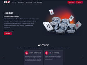 SixDot Partners is the official affiliate program for SixDot.com, a top innovator in online casinos and sportsbooks. We pride ourselves on exceptional service and attention to detail, providing transparency, swift payouts, and a seamless experience. Sign up now.