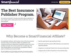 Welcome to the best insurance affiliate program. Our extensive network of insurance providers allows publishers to earn a higher yield on high quality insurance traffic than with any other program. Our proprietary software, which powers some of the top consumer insurance sites on the internet, enables our publishers with insurance and finance related sites to generate revenue from every qualified consumer who comes to their site or mobile app. The user-friendly platform we have built for our publishers makes it easy to monetize your insurance traffic. SmartFinancial is a leading insurance ad-tech company focused on delivering targeted, high-intent traffic for our insurance clients. We use proprietary customer acquisition software to connect in-market insurance consumers with our network of insurance agents and carrier partners nationwide.