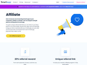 Click the "Join" button above to visit Smartsupp Affiliate Program's official affiliate program page.