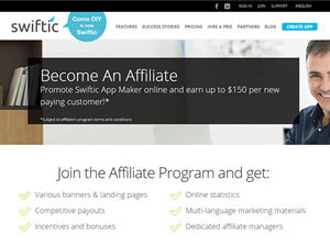 Welcome to the Swiftic affiliate program. Swiftic (formerly Como DIY) is the world's leading do-it-yourself mobile app-creation platform, powering over one million small business apps around the world. Swiftic 's unique platform enables anyone to quickly and easily create custom mobile apps, with minimal cost and no coding necessary. Join the Affiliate Program and Enjoy: • Performance incentives and bonuses • Easy funnel and high conversion rates • A variety of banners, landing pages, and promotions • Multi-language materials: Portuguese, Russian, Spanish, French, Italian, and German • A dedicated Swiftic Affiliate Manager Promote Swiftic's App-Creation Platform and Start Making Money Today!