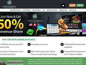 Click the "Join" button above to visit Vista Gaming Affiliates's official affiliate program page.