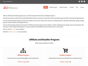 Web services and digital products affiliate and reseller program. Promote or resell products and services in various niches. Create for free your affiliate white label website.