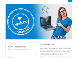 Welcome to the WeVideo affiliate program. When someone clicks on your unique link and then purchases a WeVideo individual or business subscription, you'll earn 20% of that purchase as commission. You'll keep earning on their subscription renewal for up to one year. Your earnings will grow with WeVideo! The more customers you refer, the more you can earn. Refer 25 new customers in a month, and you'll earn a 30% commission on all additional purchases through your unique referral link in that month. WeVideo is a powerful, yet easy-to-use, cloud-based collaborative video creation platform. WeVideo makes video storytelling and collaboration accessible to everyone. Company Info: WeVideo, Inc. 1975 W El Camino Real #202 Mountain View CA 94040