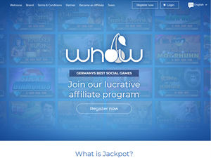 Whow Games Affiliates is the official affiliate program of Jackpot and MyJackpot social casino gaming sites. You will get paid 30% to 40% recurring revenue share commissions, based on monthly new paying player sign-ups. Company Info: WHOW GAMES GMBH Bleichenbrücke 10 20354 Hamburg Germany +49 40 609 4372 80