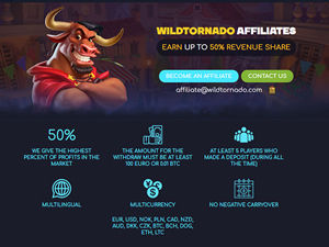 OtherWildTornado Partners is an online casino affiliate program. If you are an affiliate looking to build a strong and flourishing business relationship aimed at producing some of the highest commission...