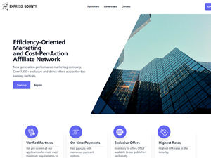 Express Bounty is a leading General affiliate network offering CPA, CPL, CPI, CPS commission rates.